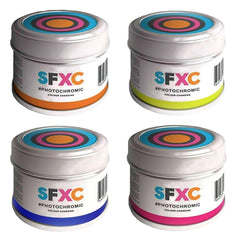 Nous vendons plusieurs couleurs d'encre photochromique : rouge, jaune, orange, vert, bleu, magenta. Nous vendons également des pigments photochromiques.